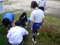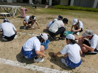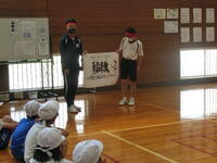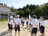 東浦オリンピックに向けて、初めての全体練習を行いました。準備体操は、小学校低学年にも分かりやすいようにと、中学生の健康委員が対面の児童生徒と対称になる「鏡」で手本を見せていました。練習の後、団長が振り返りや今後の課題を確認していました。スムーズに練習が進んだので、残りの時間を使って、みんなでグラウンドの草取りをしました。今週末には、地域の方も来てくださって大規模に草刈りを行う予定です。