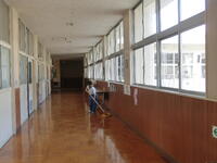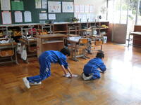 新年度2回目の掃除がありました。本校小学校では、6年生が班長を務める縦割り班で清掃活動を行っていますが、1つの班が複数箇所の場所を担当します。中学生は、教室や廊下・体育館などを一人で清掃します。10分間の清掃時間、どの子も黙々と一生懸命に作業します。その成果でしょうか、本校は、廊下も教室もいつもぴかぴかに輝いています。