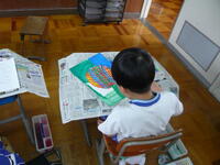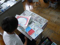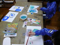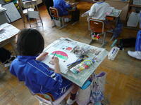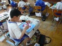 自分が持っている太陽のイメージを、絵で表現しています。えんぴつで下書きをして、水彩絵の具で(小1はクレヨンで)色をつけていきます。同じ太陽を描いてみても、一人ひとり違った太陽ができあがるのはおもしろいですね。
