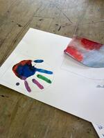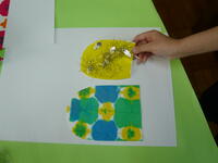 5・6年生の図工で、こどもの日に飾るこいのぼりの「うろこ」を制作しています。それぞれで制作したうろこを貼り合わせてこいのぼりを完成させる計画です。どんなこいのぼりができあがるのか楽しみです。