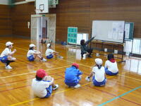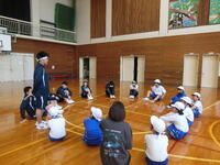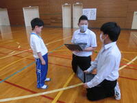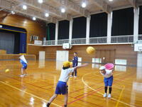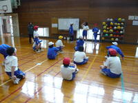 1・3・4年生の体育では、ボールを使った運動で、コーンを背中にかかえて背面キャッチに挑戦。ボールを見事にキャッチすると、自然に歓声があがっていました。