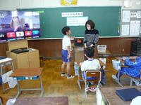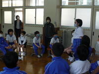 3・4年生が、消防署の仕事について学ぶため、敦賀消防署を訪問しました。はじめに、消防自動車について、それぞれの役割を学びました。実際に、東日本大震災の時に出動した「災害支援車」の中にも入らせてもらいました。次に、放水体験をさせていただきました。消防士さんの助けを借りながら、重たいホースを持ち、水のいきおいに負けないように放水することができました。消防士さんたちが、日頃から訓練している意味を実感することができました。3年生「火事からくらしを守る」、4年生「地震からくらしを守る」の学習内容を、さらに深める体験となったようです。