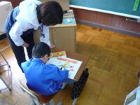 敦賀警察署や生活安全課から、交通指導員など6名の講師の先生方にお越しいただいて、交通安全教室を開催しました。小学校低学年は、実際に通学路を歩いてみました。道路を横切るときに気をつけることを確認した後、一人ずつ横断歩道を渡る様子を見ていただき、全員合格をもらいました。小学校高学年は、ビンゴゲームで交通標識の勉強をしました。「少人数ならではですね」と、賞品として交通安全のキーホルダーを全員もらい、みんな大喜びしていました。中学生は、飲酒運転を体感できるゴーグルをつけ、廊下を歩いてみました。視界がゆがんで思うように歩けなかったり、物にぶつかったりしてしまうことが分かり、飲酒運転の恐ろしさを実感していました。それぞれの発達段階に合わせて、交通安全について楽しく有意義に学ぶことができました。講師の先生方、どうもありがとうございました。これからも、交通事故に遭わないよう、安全に気を付けて生活していきます。