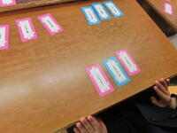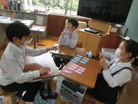 今年度初回のリアクションタイムは、これまでとはやり方が違う「質問じゃんけん!」を試みました。質問じゃんけんとは、準備(お題を見て答えを考える)→ペアでじゃんけん→勝った人が質問できる(負けた人は短く答える)を時間いっぱいくり返す→聞いた内容でもっと知りたいこと聞きたいことを話してみる という流れで進めます。初めてのやり方でしたが、活動後のふりかえりでは、「最初から体の向きを相手に向けられたし、しっかりとうなずいて楽しく話せてよかった。」「しっかりと顔を見て反応できたし質問できた。」といった感想が見られ、これまでと変わりなく活発に取り組むことができていました。