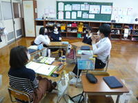 今年度1回目の授業研究会を行いました。今日は、小学校5年生の算数「体積」の単元の導入部を教職員で共有し、事後研究会で授業の振り返りや改善点について話し合いました。「よく考え、表現し、関わり合う子どもの育成 ~少人数を生かした指導を通して~」のテーマのもと、「分かる授業」から、さらに「もっと学びたくなる授業」をめざして、子どもたちの学びが主体的なものになっていくよう、授業改善に取り組んでいきます。
