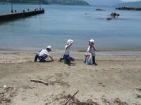 写生画を描くため、杉津の海辺に出掛けました。描きたい景色を選び、タブレットで写真撮影しました。いろいろな場所から風景を眺めて、お気に入りの場所を熱心に探していました。海辺にはきれいな貝殻もたくさんあって、貝殻拾いも楽しみました。青い空と穏やかな海が広がる風景は美しく、とても気持ちよかったです。描きたい風景の写真もたくさん撮れました。どんな画を描けるか楽しみです。