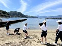 小学生に続いて、今日は中学生が写生画を描くために杉津の海辺に出かけました。中学生にとっては、何度も来ている海辺なので、描くポイントを決めるのもスムーズでした。青い海と青い空が広がる美しい風景を眺めたり、石切りをしたりして、晩春のひとときを楽しんでいました。