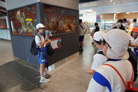 若狭町の気山小と熊川小の3校で交流をしました。敦賀駅では、学校紹介と名刺交換をして、新幹線の駅を見学しました。こどもの国では、紙飛行機飛ばし大会、プラネタリウム、サイエンスショーの見学をしました。
