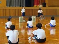 裏の畑に植えたサツマイモの苗がすくすく育っています。小学生全員で畑の草むしりを行いました。秋には大きなサツマイモが採れることを願いながら熱心に作業を進めました。