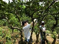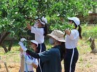 小学3年生以上の児童生徒が、みかんの摘果作業を行いました。講師の方から摘果の仕方を教えていただき、小さなみかんの実を一つ一つ丁寧に摘んでいきました。この作業をするのが初めての児童生徒もいましたが、すぐに慣れ、てきぱきと作業を進めていました。晴天に恵まれ、気持ちのよい作業となりました。秋の収穫が楽しみです。