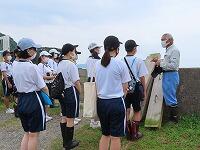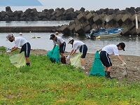 中学生が横浜地区の海岸清掃を行いました。地域の環境美化のために自分たちができることを考え、清掃活動に取り組みました。短時間でしたが、軽トラック1台分のゴミを収集しました。活動後には、区長さんからお話をお聞きしました。これからも地域の一員として、環境美化に努めていきたいです。
