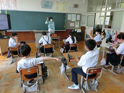 小学5・6年生が、総合的な学習の時間を中心に東浦みかんのPR活動に取り組んでいきます。今日は、東浦みかんを使った「アロマスプレー」を販売されている方に来ていただき、販売に至った経緯や思いについてお話を伺いました。子どもたちは、東浦みかんから作られている香りを感じることができました。