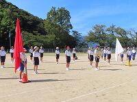 9日(土)の体育大会に向けて、全校で練習に取り組んでいます。今年度の体育大会テーマは「燃えろ赤組!輝け白組! ~みんなで最高のスマイルを~」です。今週は体育の授業に加えて1日1時間の全体練習、そして今日は予行練習を行いました。