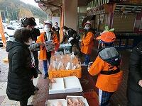 2日(木)に、小学5・6年生が北陸自動車道杉津パーキングエリアで東浦みかんのPR販売を行いました。試食を勧めたり、「甘酸っぱくておいしいですよ」などと呼びかけてチラシを配ったりして、自慢の特産品をアピールしました。販売したみかんは、11月末に大比田の「フルーツ共和国」で自分たちが収穫したものです。