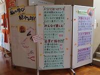 校内に児童・生徒の作品を掲示し、学びの成果を紹介しています。児童・生徒玄関を入ってすぐの「探究コーナー」には、小学6年生と中学2年生が東浦っ子タイムや浦っ子発表会で発表した内容をまとめたものを掲示しています。また、「日本文化を発信しよう」と題して、小学6年生が国語の授業でタブレットを使って調べ、まとめたものも紹介しています。先月、福井銀行様から寄贈いただきました大型プリンターのおかげで、迫力ある掲示物に仕上がりました。