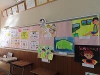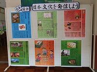校内に児童・生徒の作品を掲示し、学びの成果を紹介しています。児童・生徒玄関を入ってすぐの「探究コーナー」には、小学6年生と中学2年生が東浦っ子タイムや浦っ子発表会で発表した内容をまとめたものを掲示しています。また、「日本文化を発信しよう」と題して、小学6年生が国語の授業でタブレットを使って調べ、まとめたものも紹介しています。先月、福井銀行様から寄贈いただきました大型プリンターのおかげで、迫力ある掲示物に仕上がりました。