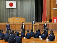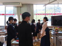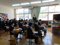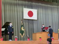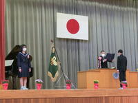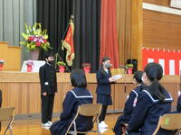 第2学期終業式・令和3年度修了式を行いました。校長先生のお話をお聞きし、1年間の歩みを振り返りました。その後、今年度で退職される先生、他校へ異動される先生の退任式・離任式を行いました。お別れする4名の先生方のお話をお聞きし、名残を惜しみました。下校時には玄関に全校児童・生徒が集まり、元気な挨拶で今年度を締めくくりました。