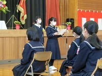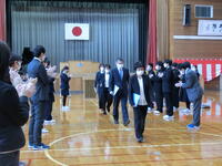 11日(金)に「第75回卒業証書授与式」を行い、小学生6名、中学生7名が、東浦小・中学校を巣立っていきました。式では、児童生徒一人一人が校長先生から卒業証書を受け取りました。教室での最後の学活では、6年間の小学校生活、3年間の中学校生活を振り返り、次への決意を新たにしました。学活後は、職員に見送られ、笑顔で学び舎をあとにしました。