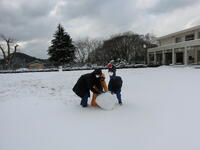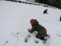 雪が積もるのを楽しみにしていた子どもたち。雪の合間を縫って、グラウンドに出て雪遊びをしました。雪玉づくりに挑戦したり、雪だるまを作ったり、ふかふかの雪の上に寝転がったり、雪の中で瞑想に浸ったり、雪合戦で走り回ったり…。つららが下がるような寒い中でしたが、子どもたちは元気いっぱい。雪の感触を存分に楽しんで、待望の雪に大満足の様子でした。
