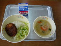 本日の献立は、ソースミンチカツ丼、かぶとじゃがいもの味噌汁、ボイルキャベツです。ソースカツやソースメンチカツは、敦賀のソウルフードと言われ、みんなのおじいちゃんやおばあちゃんの時代から人気の味です。県外の料理店でカツ丼を注文したら、玉子とじのカツ丼が出てきてびっくりしたなんて話もよく聞かれました。みなさんは、ソースカツ丼と和風カツ丼どちらが好きですか?今日も、おいしくいただきました。ごちそうさまでした!