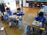 給食週間最終日のメニューは、ポーランド風カツレツケチャップ添え、芋とウインナーのスープ、サワークラフト風ボイルキャベツ、お米でりんごタルトです。1920年代に、家族を失い、飢えや病気で苦しんでいたポーランドの子どもたちが降り立った唯一の港が敦賀港です。敦賀の人たちが、その子どもたちを優しく迎え入れたことから、今でも交流が続いています。ポーランド風の食事をいただき、私たちも、人に対する優しい気持ちや思いやりの心を大事にしていきましょう。