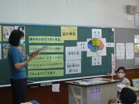 敦賀市福祉保健部長寿健康課内、地域包括支援センター「長寿」より、2人の講師の先生にお越しいただき、認知症について学習しました。本校の子どもたちは、おじいちゃんやおばあちゃんに会う機会が多くあるようで、講師の先生の話を興味深い様子で聞いていました。認知症の家族に対しての接し方で、よい例と悪い例を見て学んでいました。認知症の人だけではなく、まわりの人みんなに優しい東浦っ子であってほしいと思います。