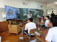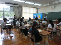 生涯学習課より講師の先生にお越しいただき、「スマホやタブレットとの付き合い方」について全校で学習しました。スマホが、脳の前頭前野や扁桃体に大きな影響を与えることや、怒りを感じてから6秒後に理性を司る前頭前野がはたらくことなどを知り、生徒たちは驚いていました。CMやテレビ番組を使ったお話はとてもわかりやすく、夏休みに「スマホとどう付き合うか」を考えるきっかけとなりました。
