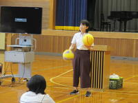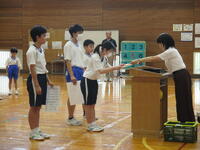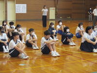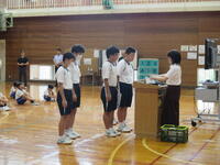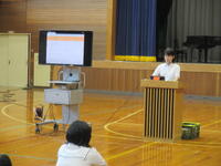 夏休み前の全校集会を行いました。最初に、バドミントン部の各種大会や児童生徒競書大会などの表彰を行いました。次に、校長先生のお話があり、学校HPを見ながら、がんばった4か月を振り返りました。この4カ月、たくさんの行事や企画がありました。みんなが楽しめるように、地域の役に立てるようにと、子どもたちがそれぞれの立場で計画・運営し、みんなで協力して成功させてきました。一人一人が本当によくがんばり、大きく成長してきた69日間でした。