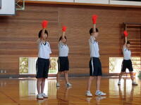9月23日(土)、ダンス発表会を開催しました。早朝からお越しくださったたくさんのお客様を前に、子どもたちは、緊張しながらも、夏休み明けから1ヶ月近く練習を重ねてきた成果を力いっぱい披露しました。小学生のかわいらしさ、中学生のかっこよさ、そして、みんなで1つのことを達成しようとする熱い気持ちが伝わって、会場は大きな感動に包まれました。みんなと力を合わせて、1つのものを創り上げていく喜び、表現する楽しさを存分に味わうことのできた、すばらしいダンス発表会になりました。会場にお越しくださり、温かく見守ってくださった保護者の皆様、地域の皆様、学校見学の皆様、どうもありがとうございました。