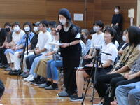 9月26日(火)昼休み、金曜日に迫った新人大会の壮行会を行いました。全校児童生徒の拍手で選手を迎えた後、選手決意の言葉で自分の目標や思いを伝え、生徒代表激励の言葉や校長先生の励ましの言葉などを通して、応援する気持ちを送りました。3年生が引退したあとも、一生懸命練習を続けてきた選手の皆さん、目標達成に向けて、全力を尽くしてきてください。