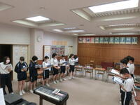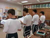『星影のエール』の合唱練習をしていました。中学生だけの練習なので、ぐっと落ち着いた雰囲気があります。男声女声に分かれてパート練習をした後、全員で合わせてみると、男声の低音が女声の美しい高音を支えるように合わさって、とてもきれいなハーモニーが広がりました。