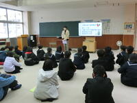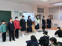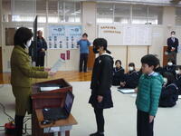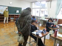 冬休み前の教育懇談会を行いました。「浦っ子タイム」では、「校外学習で心に残ったこと」「今がんばっていること」「漢字の面白さ」というテーマで、小4・小5・中3の3人が発表しました。「SNS安全教室」では、敦賀警察署生活安全課の方がお越しくださって、保護者の方対象に、ネット社会を生きていく子どもたちの安全を守るための対策についてお話をしてくださいました。「授業参観」では、各教室でふだんの授業の様子を見ていただきました。子どもたちは、少し緊張しつつも、うれしそうな表情で張り切って取り組んでいました。時折雪のちらつく寒い中、ご参加くださった保護者の皆様、ありがとうございました。