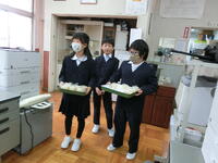 今日の給食は、クリスマス特別メニューでした。校舎内にも、掲示や飾り物、手作りのプレゼントなど、子どもたちの工夫でクリスマスの雰囲気が高まっています。昼休みには、生徒会主催「Special Thursday」の企画で、有志によるドッジビー大会が開催されていました。どこに飛んでいくか分からないふわふわのディスクを使って、小中学生が仲良く盛り上がっていました。
