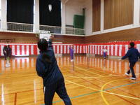 小学4年生以上の希望者が、バドミントン部員と一緒に練習に取り組みました。部員ではない子どもたちもずいぶんと上達してきたようで、ラリーもたくさん続くようになってきました。ノック練習の場面で、部員の鋭いスマッシュが決まると、参加者からは思わず「すごい!」と歓声が上がっていました。練習後には、みんなで協力して後片付けをしました。部員から感想を聞かれると、「とても楽しかった」「次はいつですか?」「4月からも絶対にやってほしい」など、意欲的な声がたくさん聞かれました。今年度、新しい取り組みとして導入した「集まれ! みんなで楽しむバドミントン」、名前のとおり、みんなで楽しくバドミントンを体験することができて、部員にも参加者にもよい企画となりました。