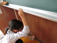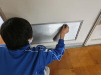 年度末の大掃除を行いました。ふだんは手の届かない窓や扉のレールや幅木の上、ロッカーも中を空にしてきれいに拭きました。1年間お世話になった校舎や教室をきれいにして、気分もすっきり。新しい学年に進級する準備が、また一つ整いました。