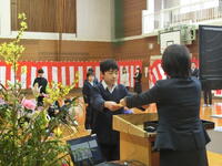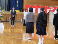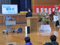 まず、各種大会・コンクールで優秀な成績を収めた人の表彰を行いました。修了式では、様々な挑戦をして成長してきた1年を振り返り、新しい学年に向けての意欲を高めました。離任式には卒業生も駆けつけてくれて、共に過ごした時間を思い返して最後の時間を持ちました。別れを惜しむように、なごり雪が降る寒い朝になりましたが、新しい出発のためのいいお別れができました。この1年、本校の教育活動に大きなご協力と深いご理解をいただいた保護者の皆様、地域の皆様、本当にありがとうございました。また、本校ホームページをご愛読くださったこと、心より感謝申し上げます。新年度も、地域と共にある学校のよさを十分に発揮できるよう、子どもたちと共になお一層精進してまいります。