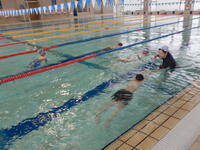 運動公園のプールで水泳学習を行いました。泳力に応じて、息継ぎやバタ足の仕方などを学ぶコースと、クロールや平泳ぎの技能を高めるコースに分かれて指導を受けました。 各自が学習前に立てた目標に向かって、指導員や先生の話をしっかりと聞き、安全に気をつけながら頑張ることができました。