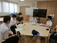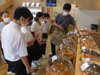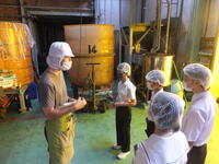 最初の訪問地「米五」では、工場で味噌作りを見学後、商品開発等についてインタビューをしました。
