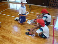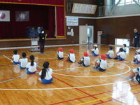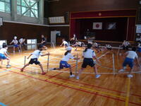 梅の里小学校と3校合同で開会式を行った後、お互いの学校紹介や