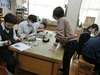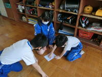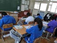学習も1年のまとめの時期に入ってきて、いろいろな場面で子どもたちの成長が見られます。低学年のボール運動の授業では、ボールの扱いがずいぶんと上達しています。3年生の理科では、グランドの砂場で「砂鉄集め」をしていました。マグネットを使って集めた砂鉄で実験をするそうです。5年生の算数では、真剣な面持ちで調べたり聞いたりして、熱心な学習ぶりです。6年生の国語では、友だちが挙げた疑問について、自分なりの考えを伝え合って、なるほど!と納得し合う様子がありました。自分たちで深めることができるようになっています。中学生の技術では、畑で育てている野菜や果物の世話をした後、市からいただいた材料を使って、発展的に作品作りをしていました。3年生は、復習を兼ねて、1・2年生の定期テストの問題に挑戦していました。