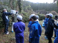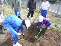 校庭のみかんの木が何本か枯れてしまったため、春に新しい苗木を植えるための準備をしました。地域の特別非常勤講師の先生から、植える場所には、まず穴を掘って肥料を混ぜておき、しばらく寝かせておくとよいことを教わりました。どのくらいの間隔で植えるか場所を決めて、3チームに分かれて穴掘りを開始しました。スコップとくわを交互に使いながら深さ50㎝ほどの穴を掘り、今度はそこへ肥料と土を混ぜて山を作ります。3チームが競うように作業をしたため、かなり短時間でみかんを植える場所が完成しました。あたたかくなって、新しいみかんの苗木を植える時が楽しみです。