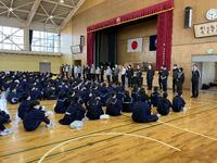 3月7日(木)の1限目に、3年生の同窓会入会式が行われました。厳かな雰囲気の中、同窓会長のお話を伺って、改めて3年生達は気比中学校を卒業するのだと実感しているようでした。明日は立派な姿で卒業式を迎えて、この気比中学校を巣立っていって下さい。