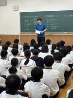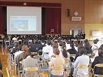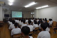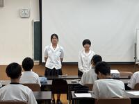 2年生の学活・総合の時間において、二州地区にある高校(敦賀気比高校・敦賀高校・美方高校・敦賀工業高校)の説明会が開かれました。高校生や高校の先生方が来校し、学校・学科説明や、日頃の学校生活について話してくださいました。中には、高校から本格的に始まる「探究」の発表も聞くことができ、高校からどのようなことを学ぶのかが明確になった説明会でした。
