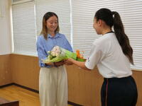 また、1・2年生の代表生徒から、3年生の代表生徒(体育大会の団長)に向けて、感謝の言葉とメッセージポスターが送られました。