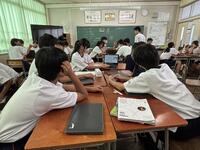グループ毎に、自分の調べてきたことを、報告し合っていました。この発表会で、友達からもらったアドバイスを元に、夏休みに更に課題を深く掘り下げ、10月の本発表へと繋げていく予定です。