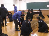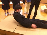 災害時の「簡易ベッド」の作り方を教えていただき、実際に作ってみました。災害が起こったとき、自分達には何ができるのか、どういう手段があるのか等、日頃から知っておくことが大切ですね。