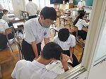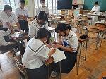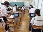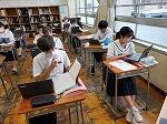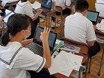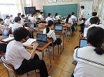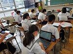3年生でもタブレットの学習がスタートしました。初日の今日はタブレットの扱い方や、ログインの仕方、アカウントについてなどこれからタブレットを使っていく上で最も大切なことを学びました。説明が終わってからはいよいよ実際にタブレットに触ってみました。アカウントにログインできたら今度は「Google Earth」を使って、「気比中学校の屋上に書いてある文字はなにか」を一人ひとりが確認しました。慣れないタッチ操作に苦戦しながらも答えを見つけることができたようです。