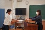伝達表彰式では、気比中の代表として輝かしい成績を残した生徒の名前を読み上げ、代表生徒が校長先生から賞状を受け取りました。校長先生からは、「部活動という与えられた時間を大切に、練習に励んでください。」とお話がありました。