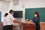 また、生徒指導より、夏季休業中の生活において、「自分の身を自分で守ること」と「家族との絆を深めること」のお話がありました。ルールを守り、身の周りの危険に巻き込まれないようにしたり、周りの人に助けを求めたりして、安全に気をつけましょう。また、日頃の感謝の気持ちを込めて、家族で過ごす時間を大事にし、お手伝いをしたりして、「心の成長」ができるように過ごしましょう。