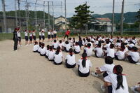 それぞれの色に分かれて、団長を筆頭に副団長や旗手、リーダーの生徒たちが各組をまとめ、応援の練習や気比中体操に取り組みました。